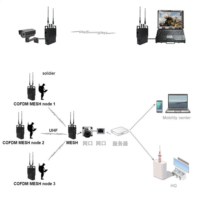 手持型寬帶無線自組網設備基于軟件無線電體系架構進行實現,采用自主研發的COFDM波形、高效信道編解碼和多跳自組網協議等技術,具備很強的對抗復雜信道環境能力,實現在復雜場景下完成單兵、車輛、無人機等機動點、固定點之間的無中心同頻自組網寬帶業務傳輸。設備體積小、功耗低、易于單兵手持攜帶。
