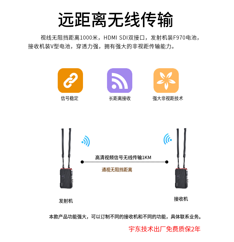 YD-OL1001-X1 It is a set of wireless HD video transmission equipment with through-wall, non-line-of-sight transmission characteristics, supporting the highest video resolution of 1080P/60Hz, the system is based on 1.4GHz wireless network technology for transmission. Using H.265 codec technology for image processing, the image is clearer.